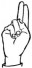 На ћирилици написано СИМОНА ДАБИЋ састоји се из 11 слова [?]. Исписано ћириличном једноручном азбуком за глувонеме: